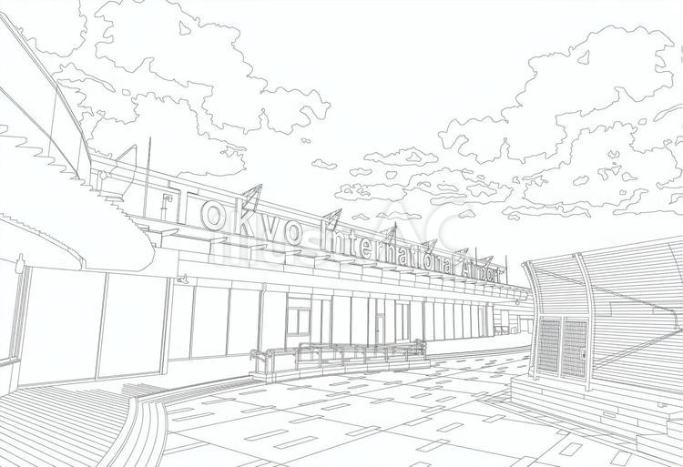羽田空港国際線の展望台 大人のぬり絵 Coloring。