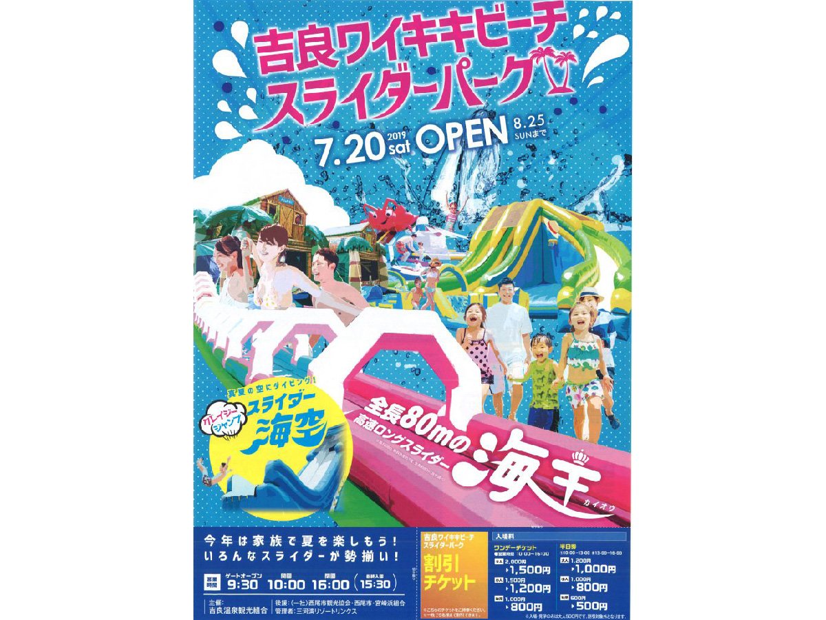 吉良ワイキキビーチスライダーパーク」OPENのお知らせ愛知県西三河エリアの公式観光サイト 西三河ぐるっとナビ。