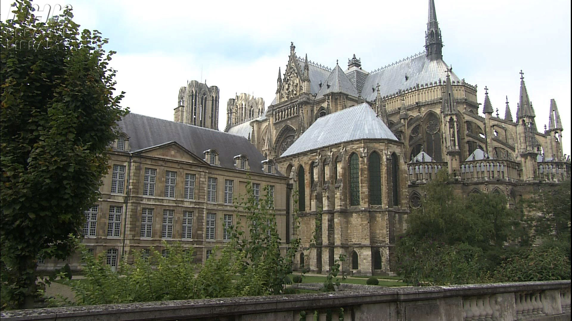 ノートルダム大聖堂 ロングショット フランス北部 ランス 素材NHKアーカイブス。