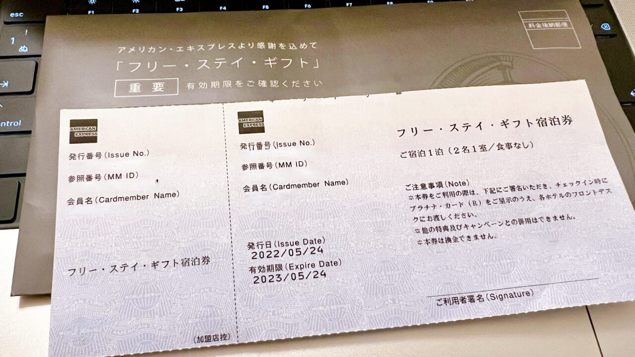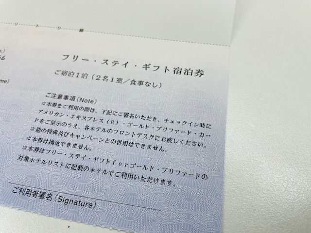 2020年フリー・ステイ・ギフト アメックス・ プラチナ特典 届きましたプチ優雅に弾丸旅行。