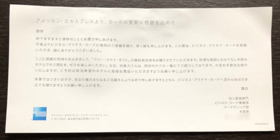 今年もアメックス プラチナの無料宿泊優待が届いています: Blog of SIOUX。