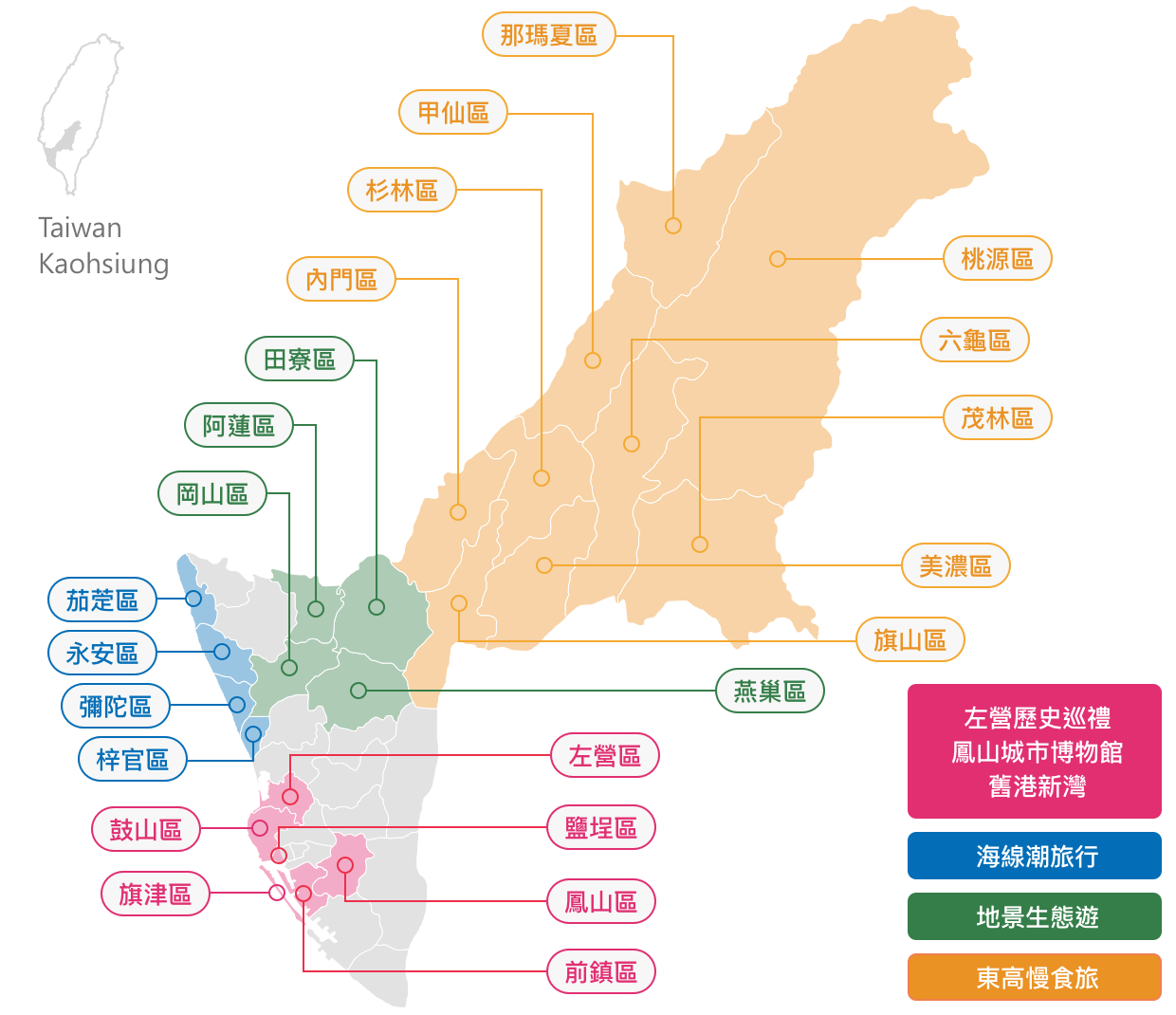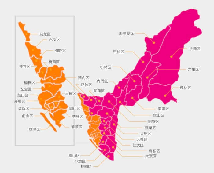台湾高雄市全体マップ台湾高雄市の観光・旅行・グルメ・生活情報。