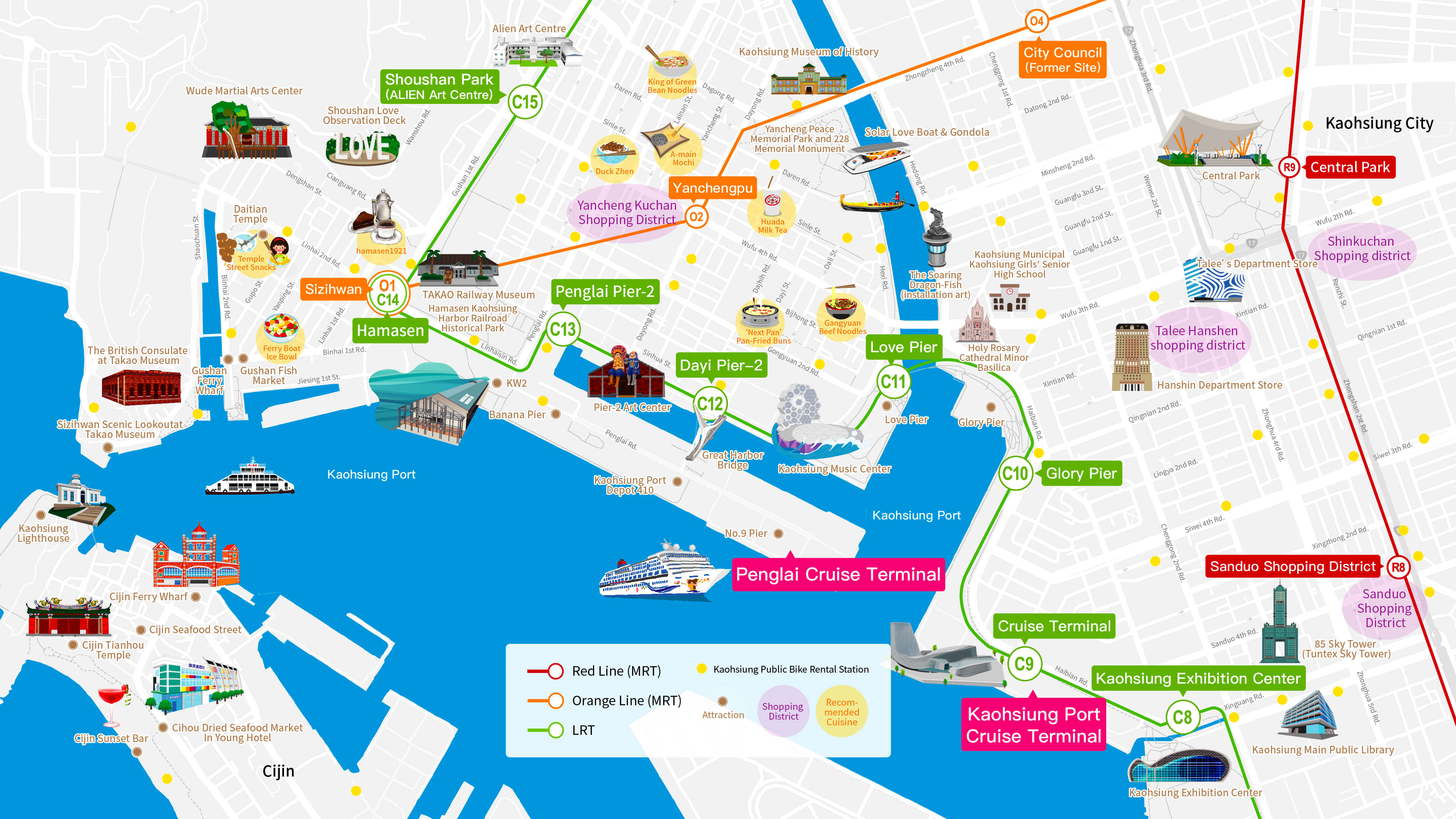 台湾 高雄 観光マップ (340 無料画像)