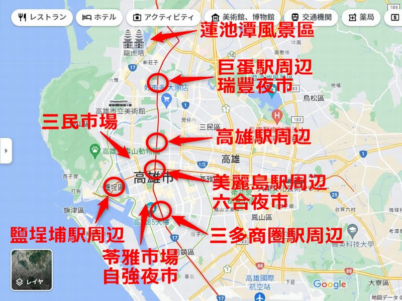 高雄の観光地図 マップぷちち台湾 台湾旅行。