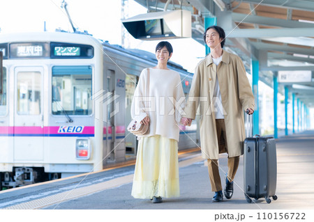 電車で旅行に出かける若いカップル 撮影協力「京王電鉄株式会社」の写真素材110156722- PIXTA。