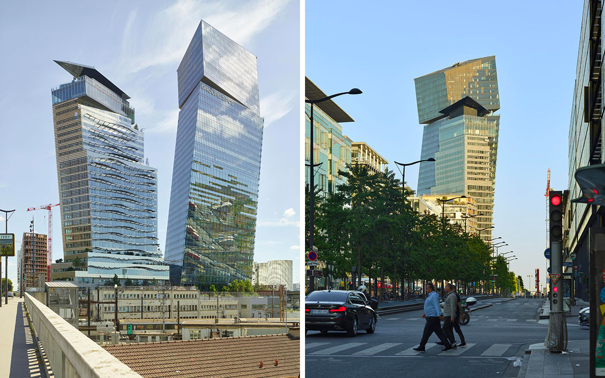 世界の名建築を訪ねて。フランス建築界の巨匠ジャン・ヌーヴェルの“V字形に傾斜したユニーク極まりない” 39階建て高層ビル「トゥール・デュオ ToursDuos 」。