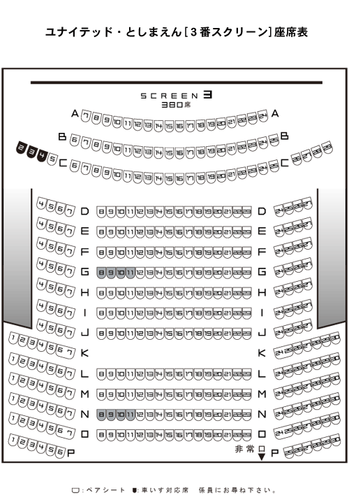 ユナイテッド・シネマとしまえん スクリーンの座席表383席。