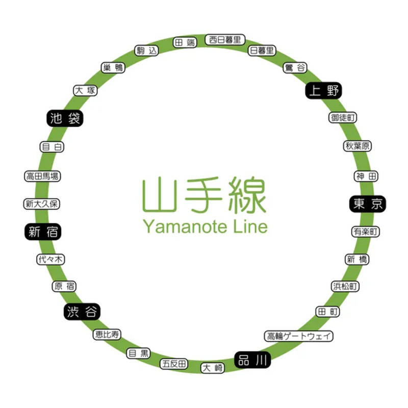 山手線「内回り」の駅名一覧 - 30駅の順番を覚えよう。