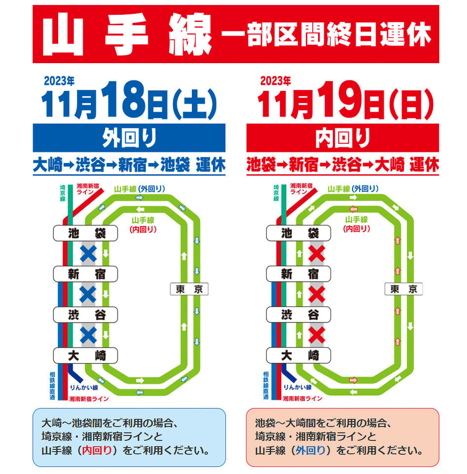 山手線、渋谷駅の工事で11月18日に外回り、19日に内回りに終日運休 池袋~大崎 - トラベル。