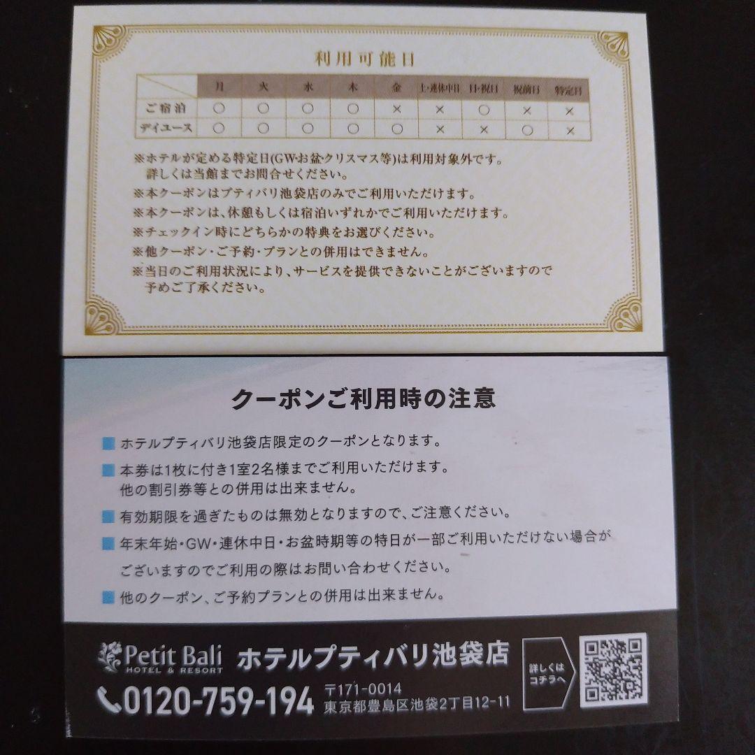 ホテルプティバリ 池袋 クーポン 宿泊。