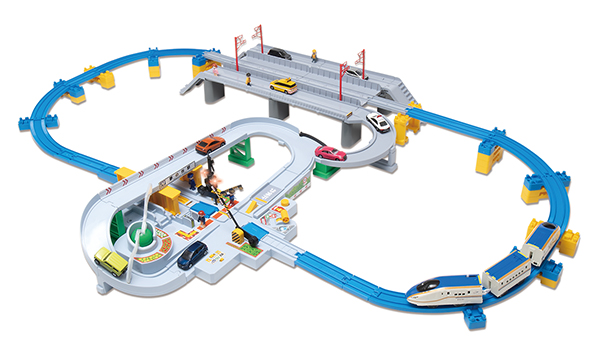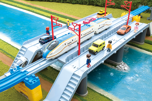 プラレール新製品 W7系かがやき鉄道道路併用橋セット。