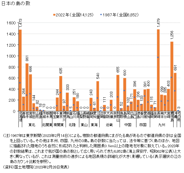日本の島の数国土地理院。