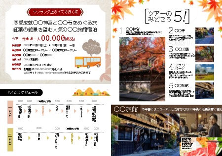 ツアー紹介_バス旅_裏面パンフレット旅行の無料デザインテンプレート印刷のラクスル。