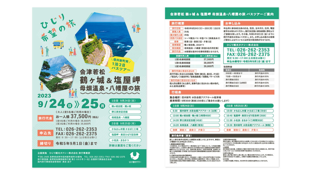 日帰りバスツアーのチラシアート&デザイン タッグ。