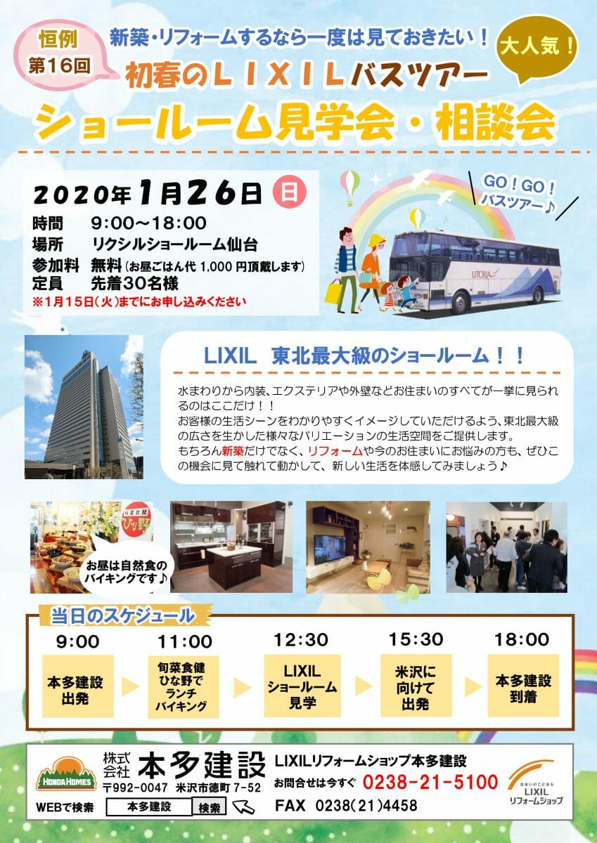 バスツアーチラシ ほか米沢市の住宅・新築・リフォームなら本多建設。
