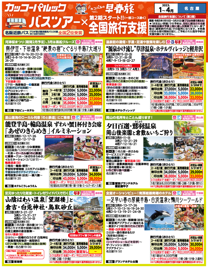 2023年 早春旅バスツアー 1-4月名古屋・表 1カッコーパルック。