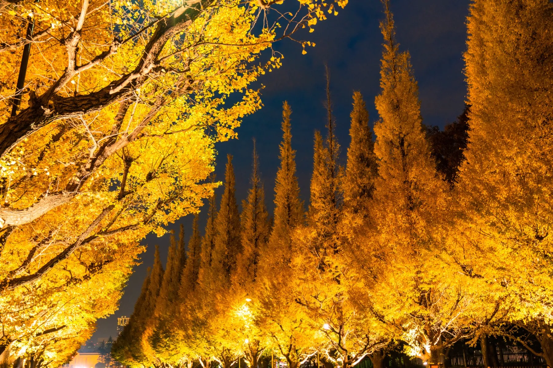 神宮外苑イチョウ並木のライトアップ。