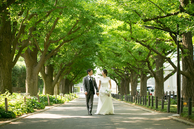 外苑前銀杏並木で撮るウェディング写真。東京表参道の結婚写真専門スタジオウェディングアベニュ。