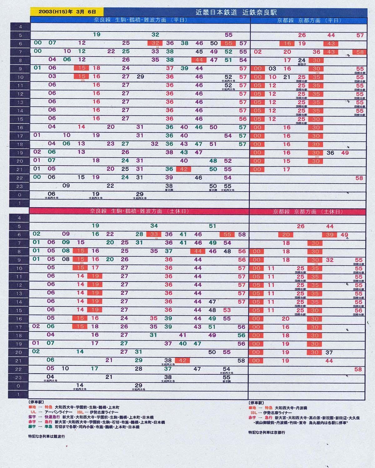 №1810 駅の時刻表から見る 私鉄ダイヤの変遷 18.近鉄奈良線。