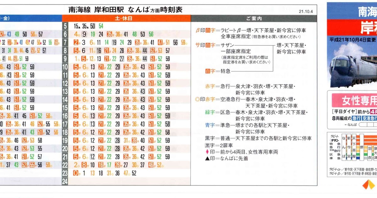 南海線泉佐野駅時刻表 2023年10月21日改正坂口 宣之のブログ。