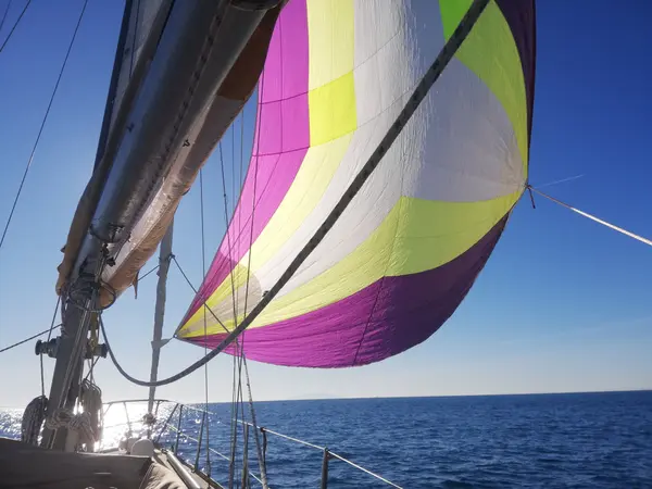 大きくて小さい海船 漁船 クルーズ ライナー 帆。