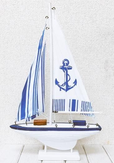 ストライプ帆ヨット イカリハンセン ヨット モデルヨット ホワイト。