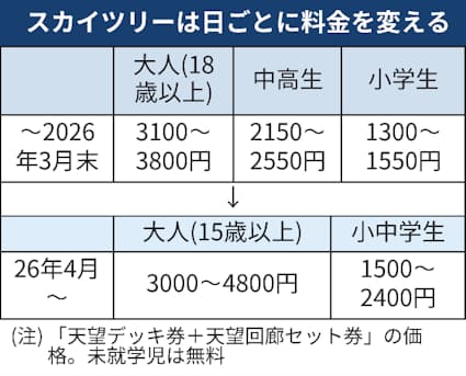 東京スカイツリー、展望台の入場券を変動価格制に 26年4月から -。