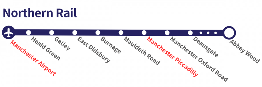 マンチェスター空港から市内中心部へのアクセス方法 鉄道利用。