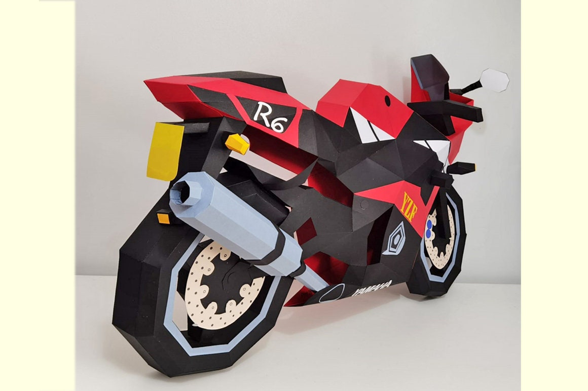 DIY ペーパークラフト スポーツバイク、ペーパーおもちゃ、ヤマハ R6、ローポリバイク、バイクトロフィー、ペーパークラフト。