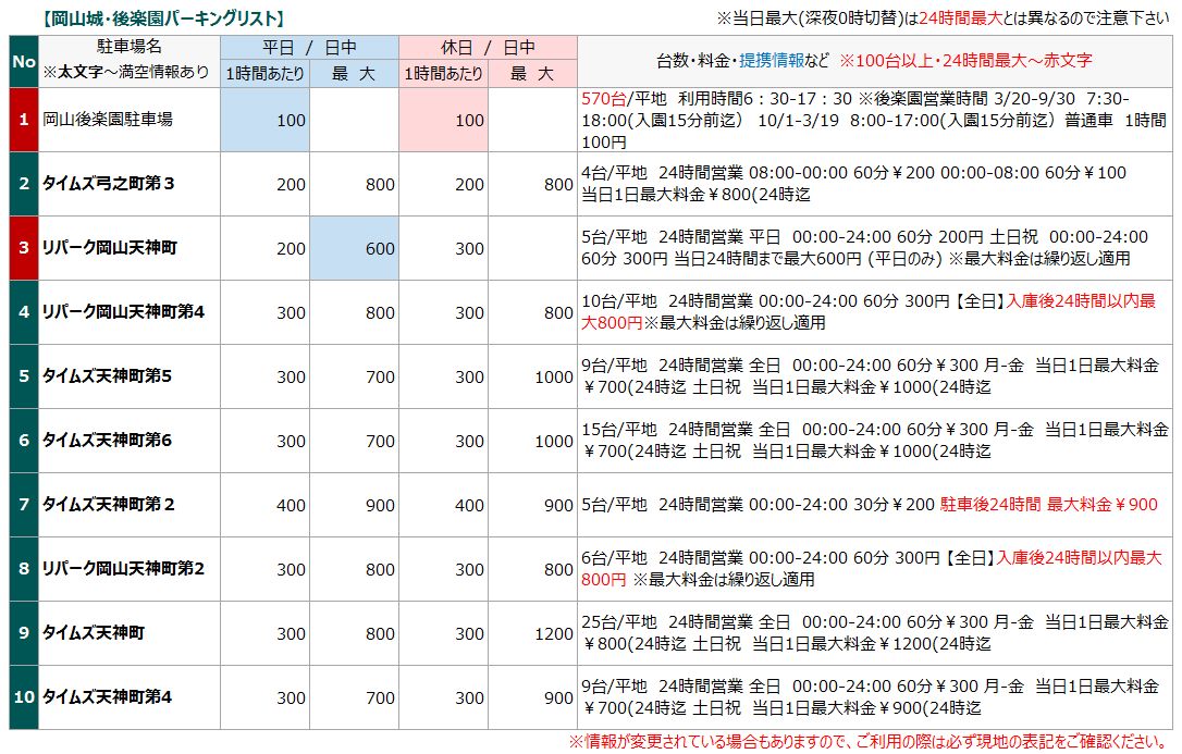 岡山後楽園 駐車場 安い 土日 (349 無料写真)