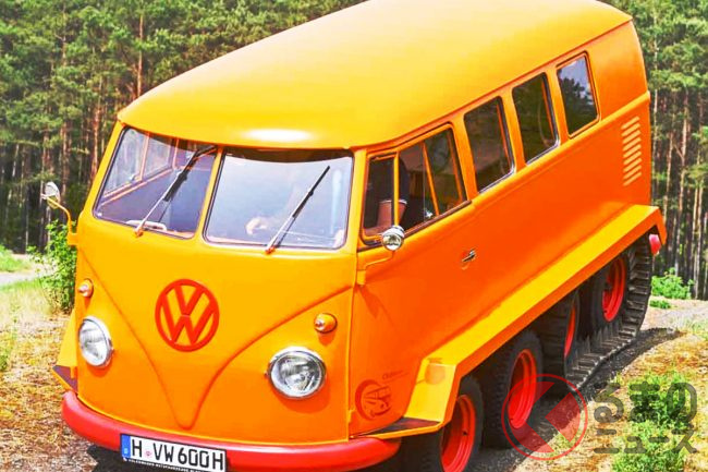 山岳路用にカスタムされたワーゲンバス フォルクスワーゲンがレストア リア4輪が疑似キャタピラーとして機能する「ハーフトラック・フォックス」インターネットコム。