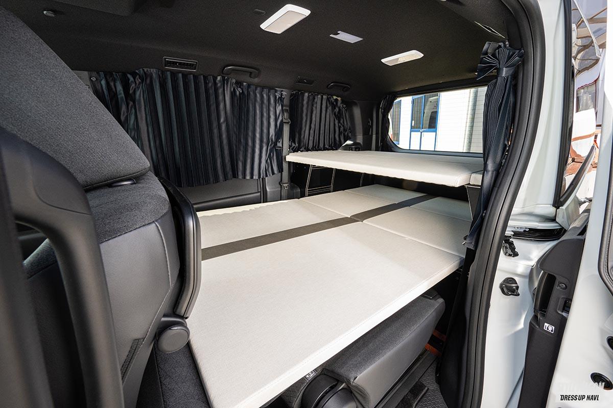 新型ノア・ヴォクシー 車中泊を快適にするベッドキット設置!超フラットで快適そうな空間。