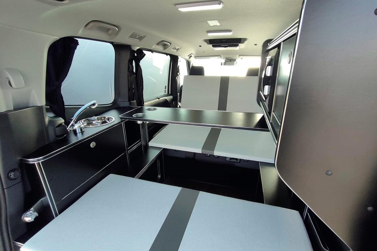 トヨタ・ノアをベースにソーラーパネルやFFヒーターも標準装備な快適ミニバン車中泊車AUTO CAMPER オートキャンパー。