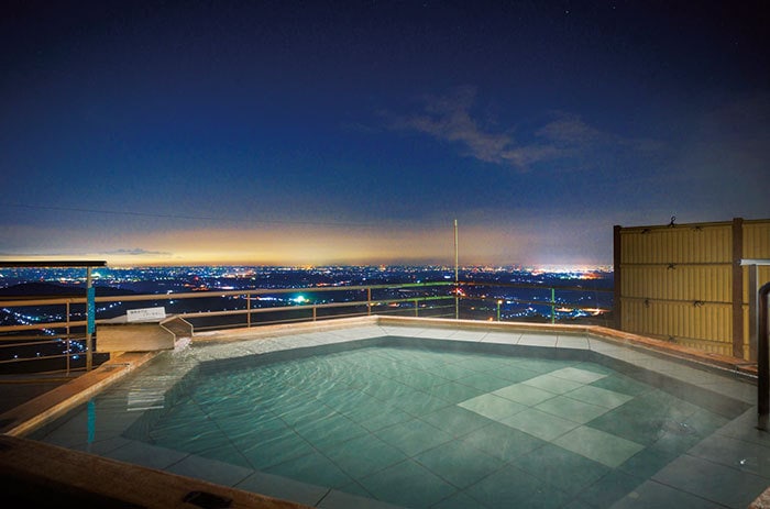 Tabist ホテル いやしの里 関東平野一望の露天風呂。