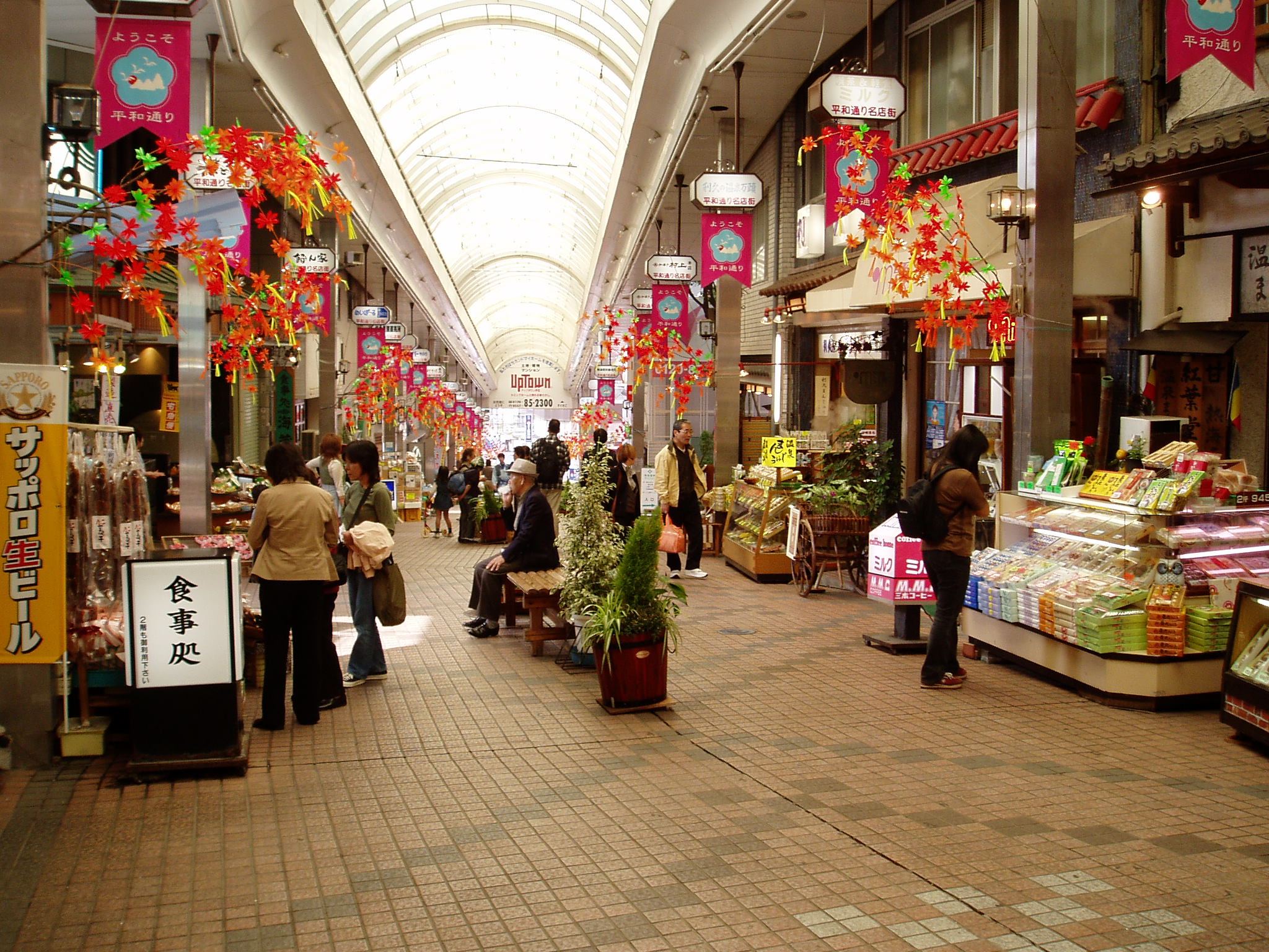 熱海の活気ある平和通り商店街を探索しよう。