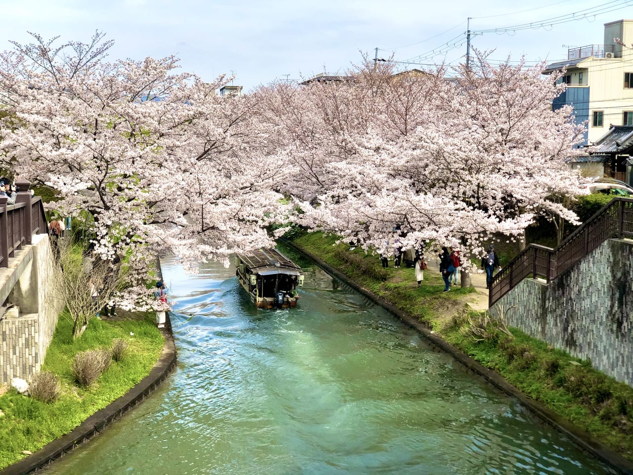 お花見🌸伏見であい橋株式会社MY HOUSEお花見、桜、京都、伏見、十石船、ロケ地、であいばし。