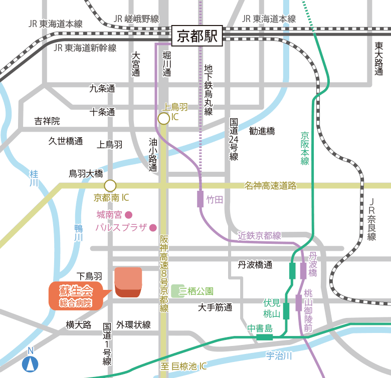 電車でお越しの方交通アクセス病院案内蘇生会総合病院医療から介護まで 京都市伏見区。