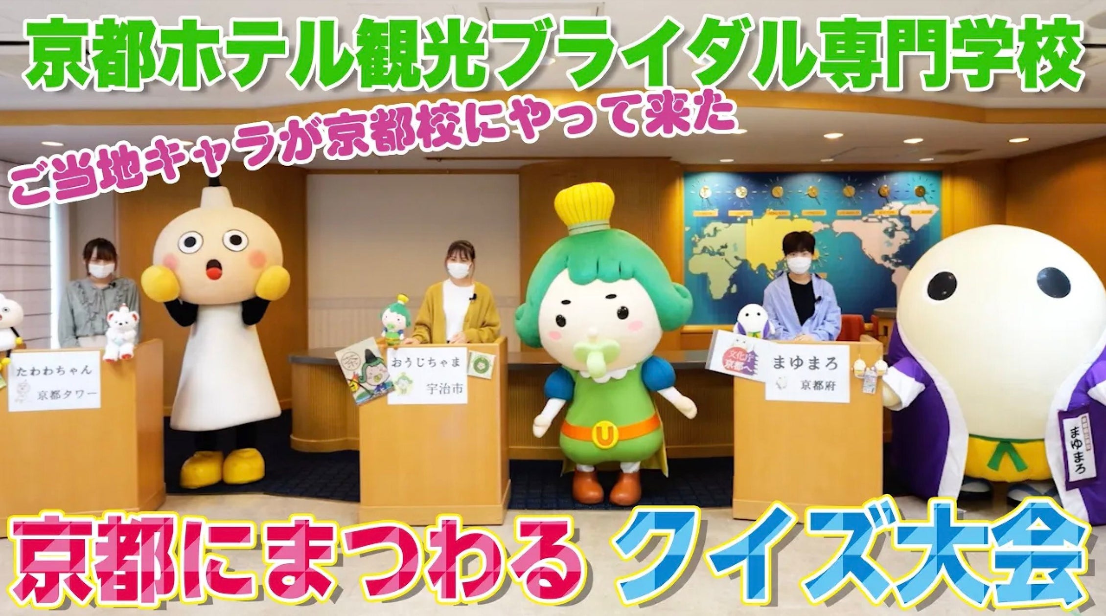 観光業界を目指す学生が京都ご当地キャラクター「まゆまろ」「おうじちゃま」「たわわちゃん」コラボ動画を制作!京都ホテル観光ブライダル専門学校学校法人大和学園のプレスリリース。