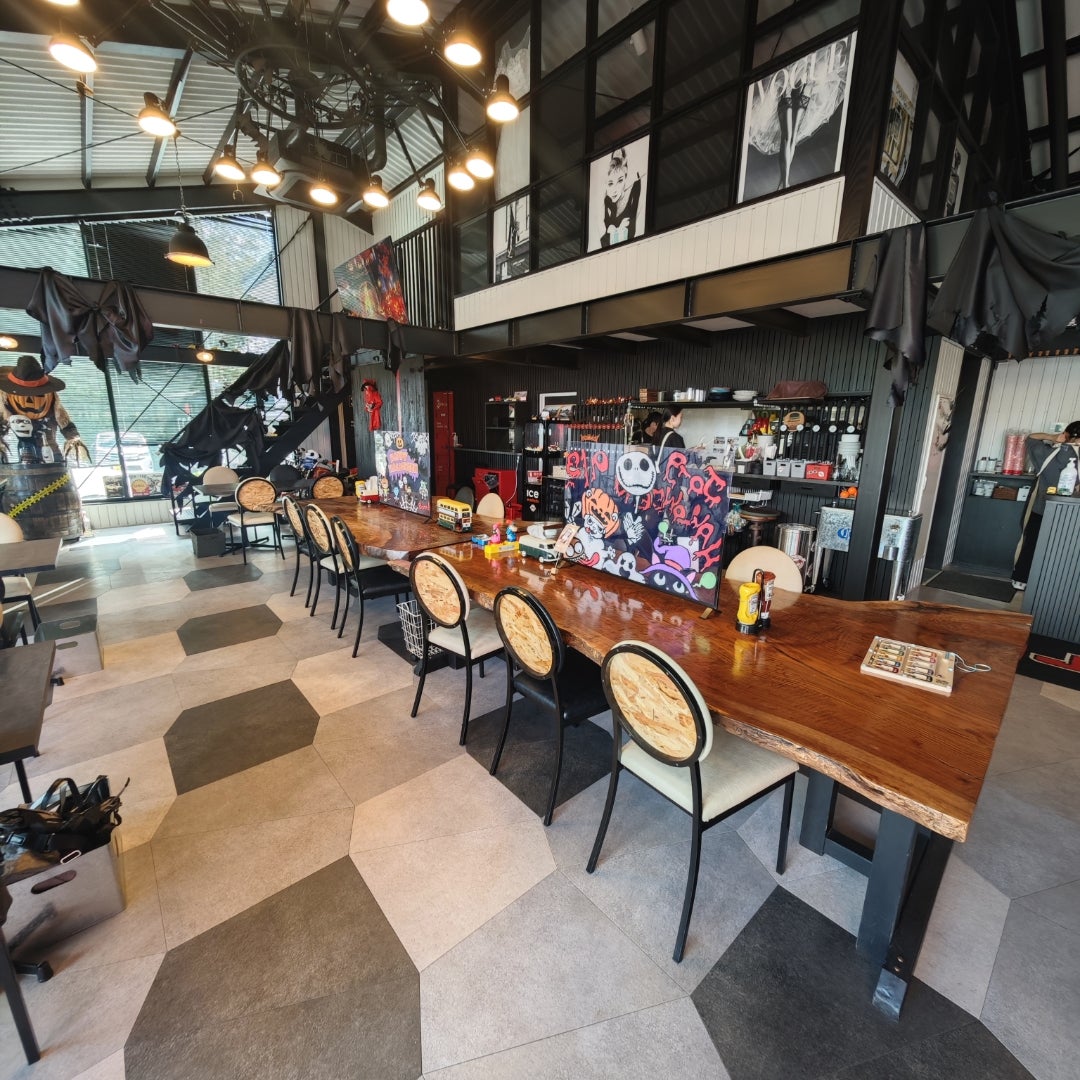 ハロウィンなカフェ 真っ赤な二階建てロンドンバスのあるカフェ!めっちゃハロウィンやった!!ジョーナインカフェロンドンバスハロウィン#沈み橋潜水橋奈良。