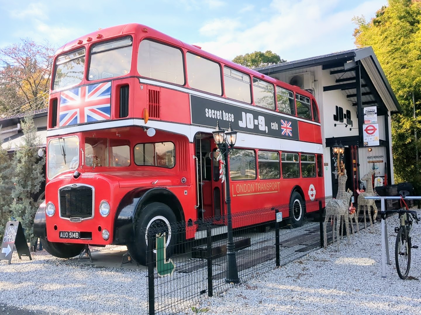 奈良県のロンドンバスカフェ『シークレット ベース ジョーナイン』。