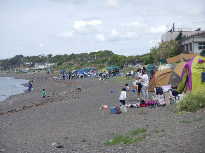 三戸浜海岸でキャンプ・バーベキューを楽しむ人たち三浦半島ビーチマップ。