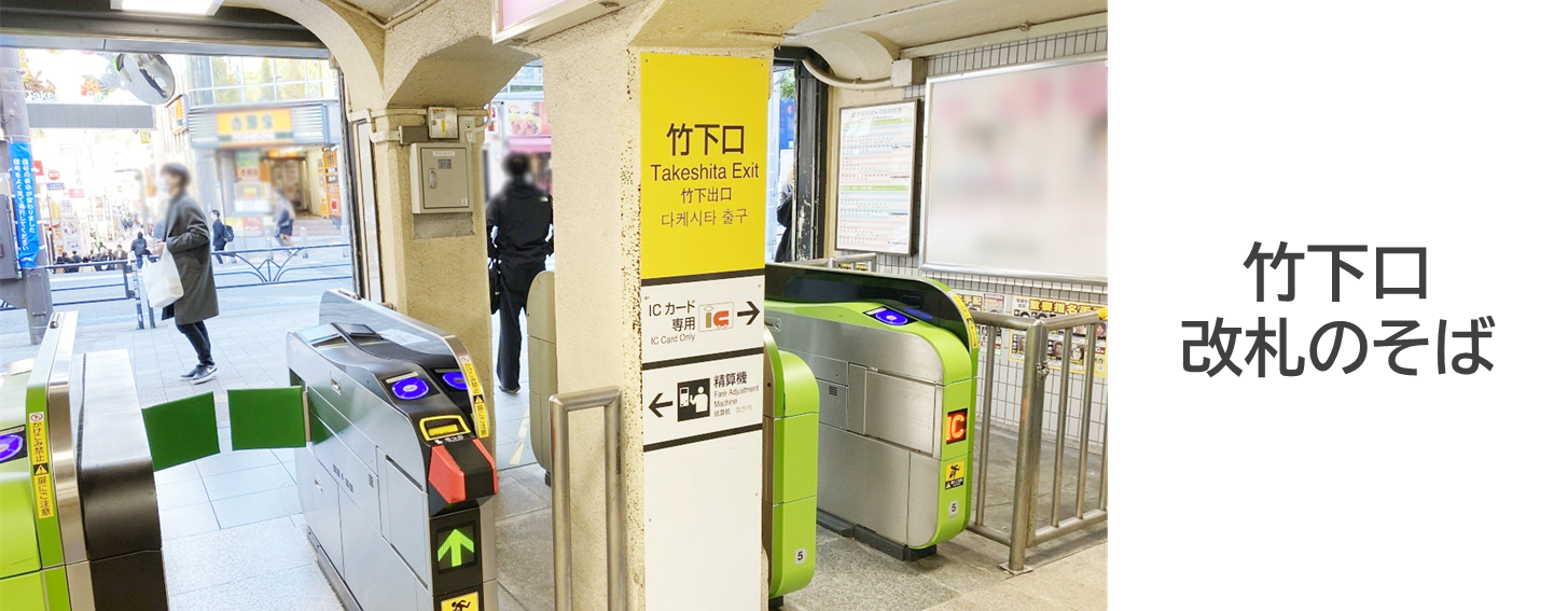 JR山手線 原宿駅 の竹下口改札よりのご案内マテリアルクラウン。