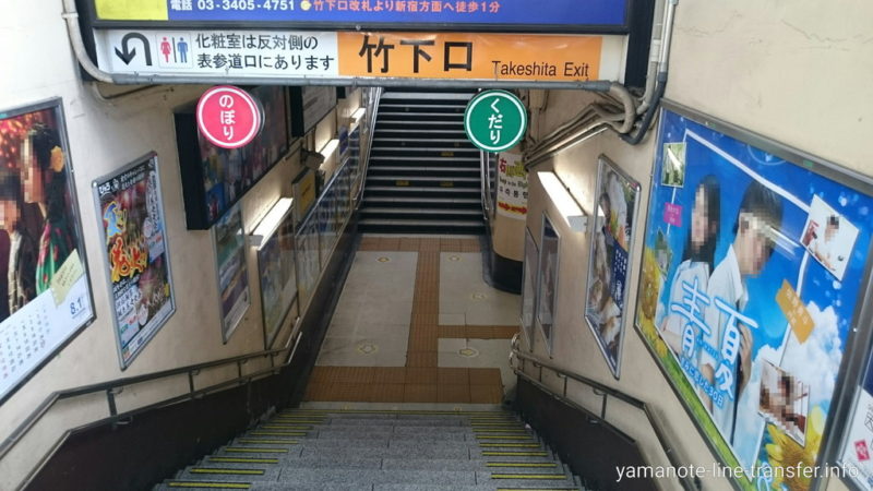 階段 竹下口へ1分で行くには 原宿駅:山手線内回り山手線パタパタ乗り換え案内。
