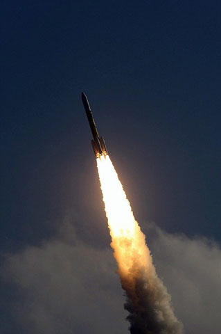 高速度カメラで撮影した「AtlasIIロケットの打ち上げ」。