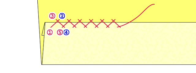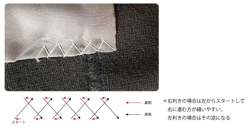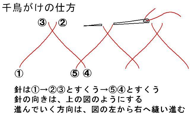 千鳥がけ 右利き武庫川女子大学家庭科教材。