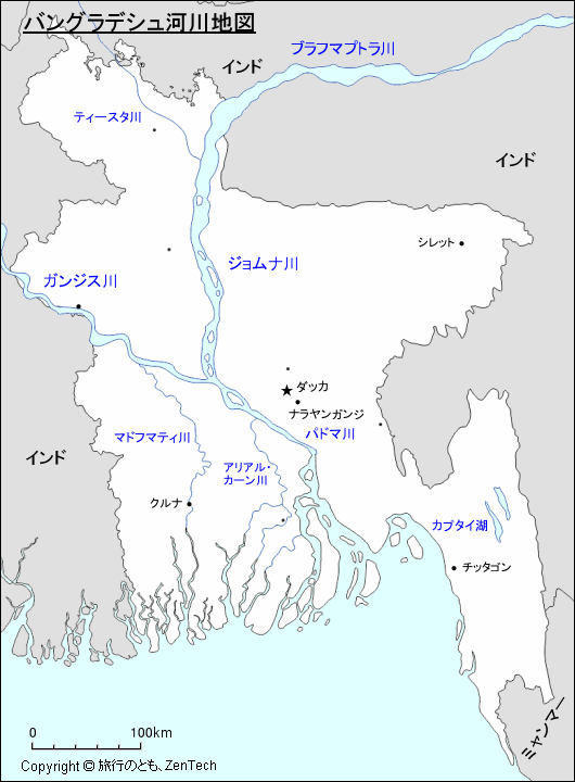 バングラデシュ河川地図 - 旅行のとも、ZenTech。