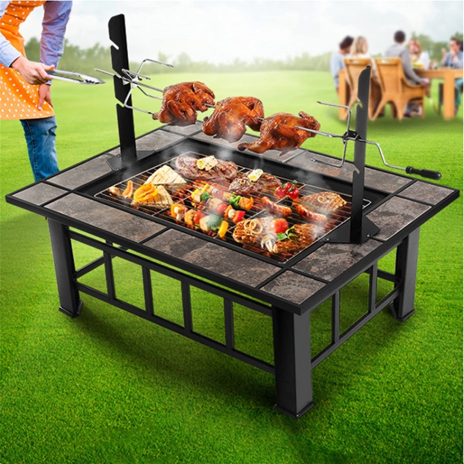MERIGLARE 屋外ファイヤーピット暖炉多機能防水ポータブル暖房キャンプファイヤーピット火鉢庭屋外バーベキュー家庭用 焚き火台 3wayバーベキュー テーブル キャンプ 屋外用 暖炉 バーベキュー 安全 耐風 屋外 焚火台 バーベキューコンロ ファイヤーピットボウル。
