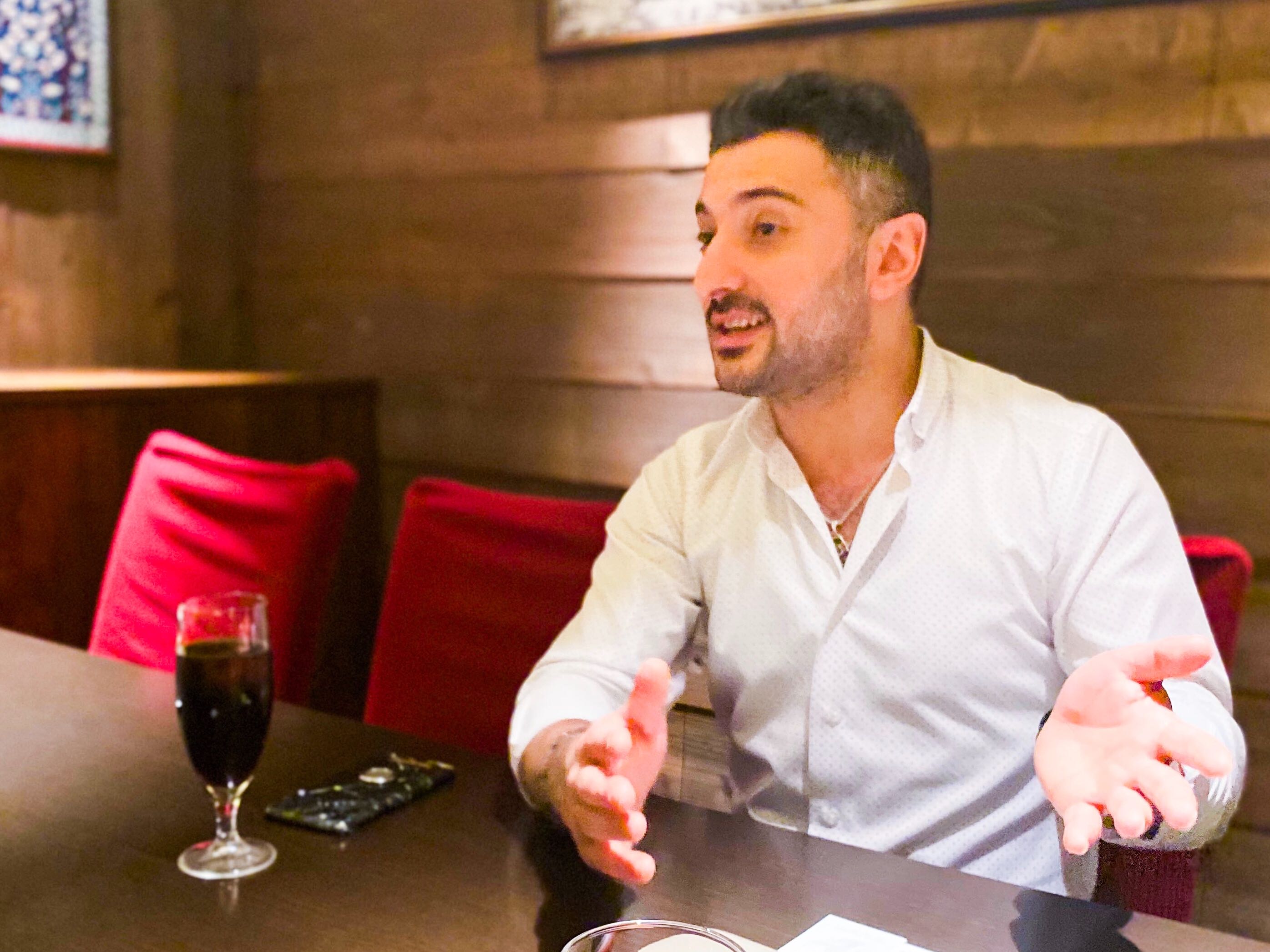トルコ人 アフメット氏福岡市早良区原の居酒屋 炭家108本格炭火焼の焼鳥が人気のお店。