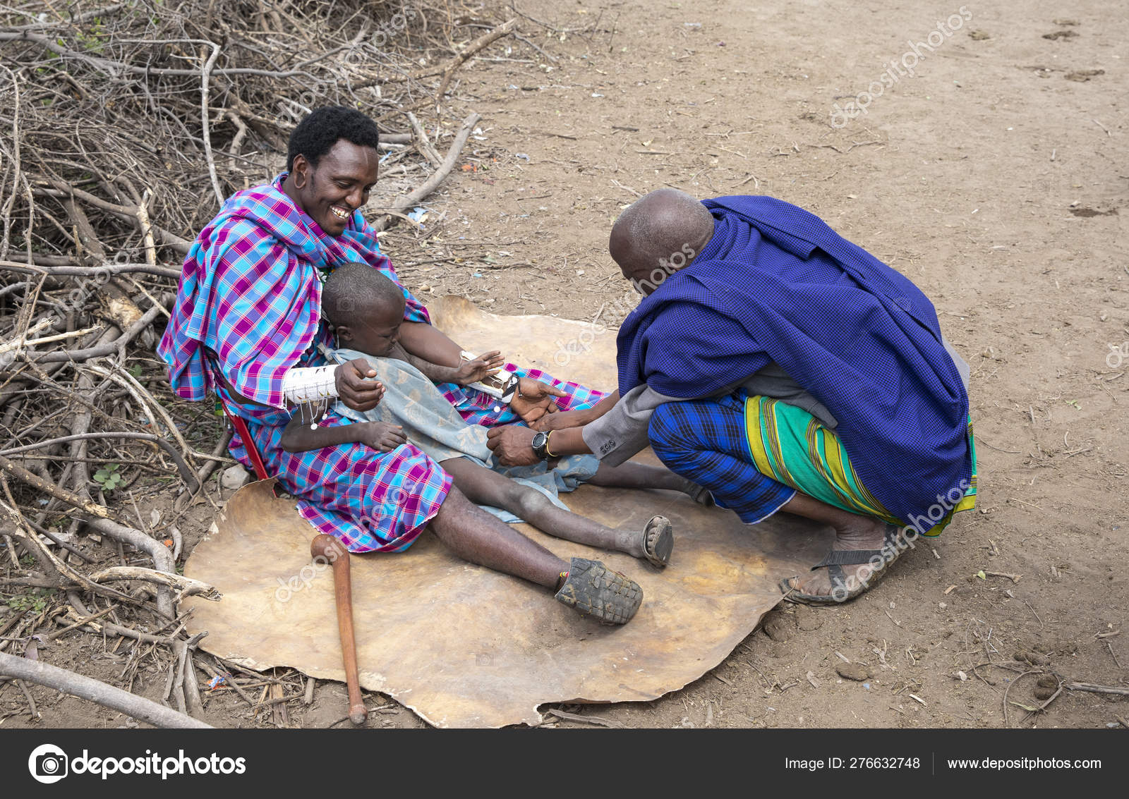 タンザニア 2019年6月4日 マサイの男性は 彼らの伝統で割礼がどのように起こるかを示しています。