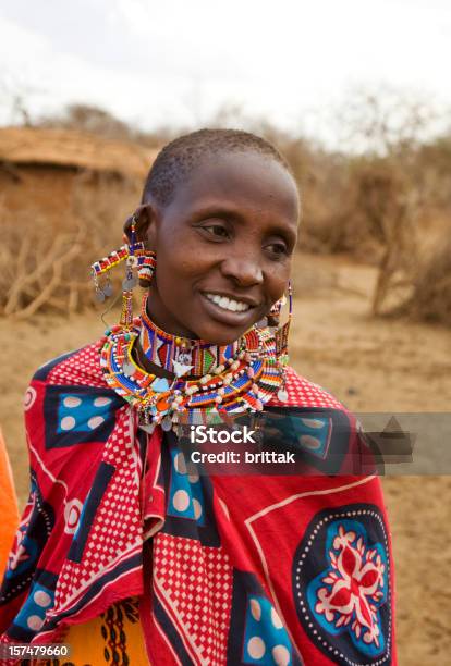若い笑顔のマサイ族の女性彼女の村の前にケニアます - タンザニアのストックフォトや画像を多数ご用意 -。